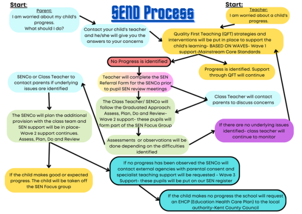 We have created a flow diagram (full version attached) to illustrate the process teachers and parents will follow to identify SEND in our pupils.