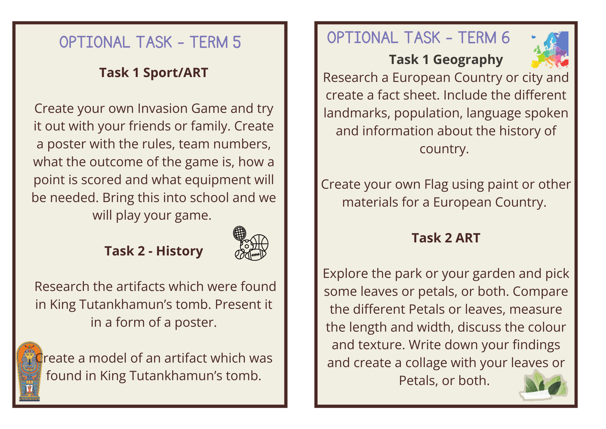 Optional Homework Tasks Term 5 and 6