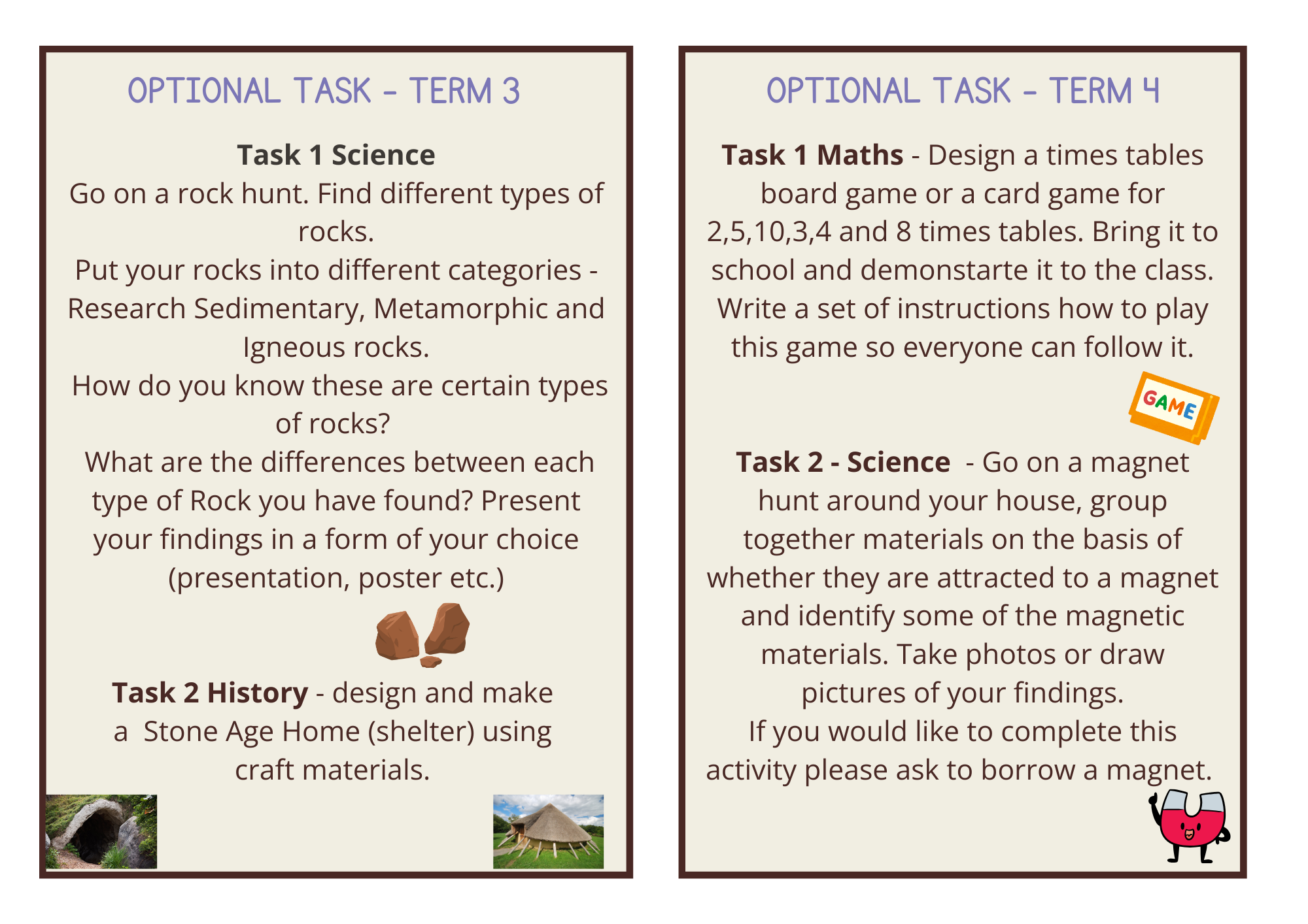 Optional Homework tasks Term 3 and 4