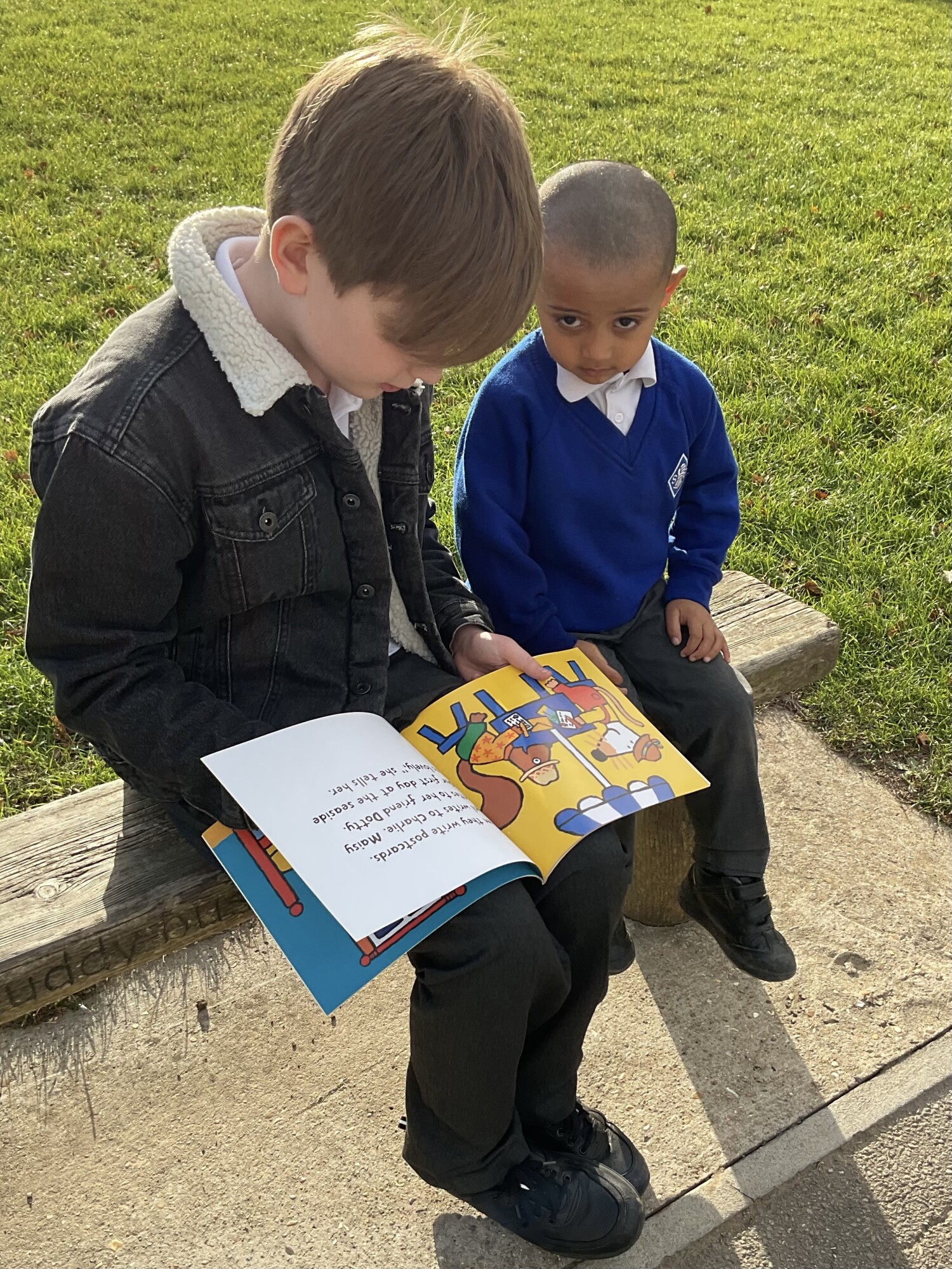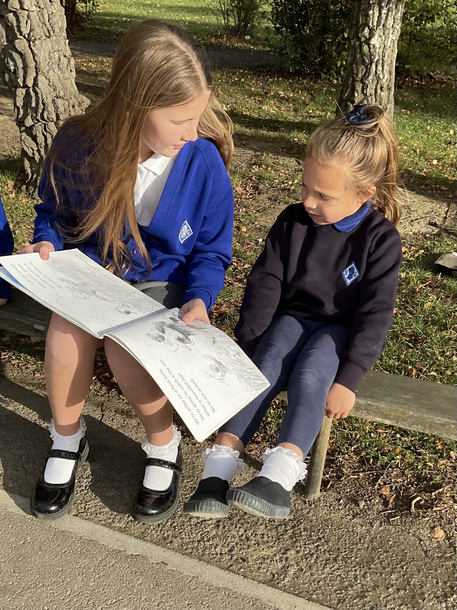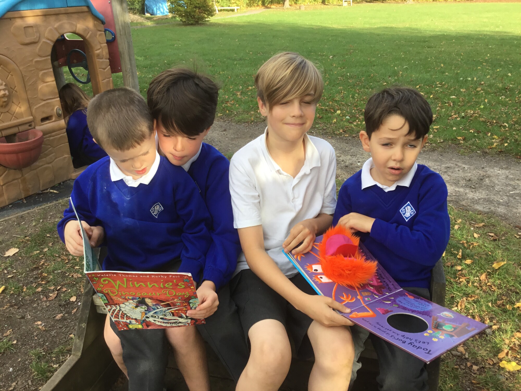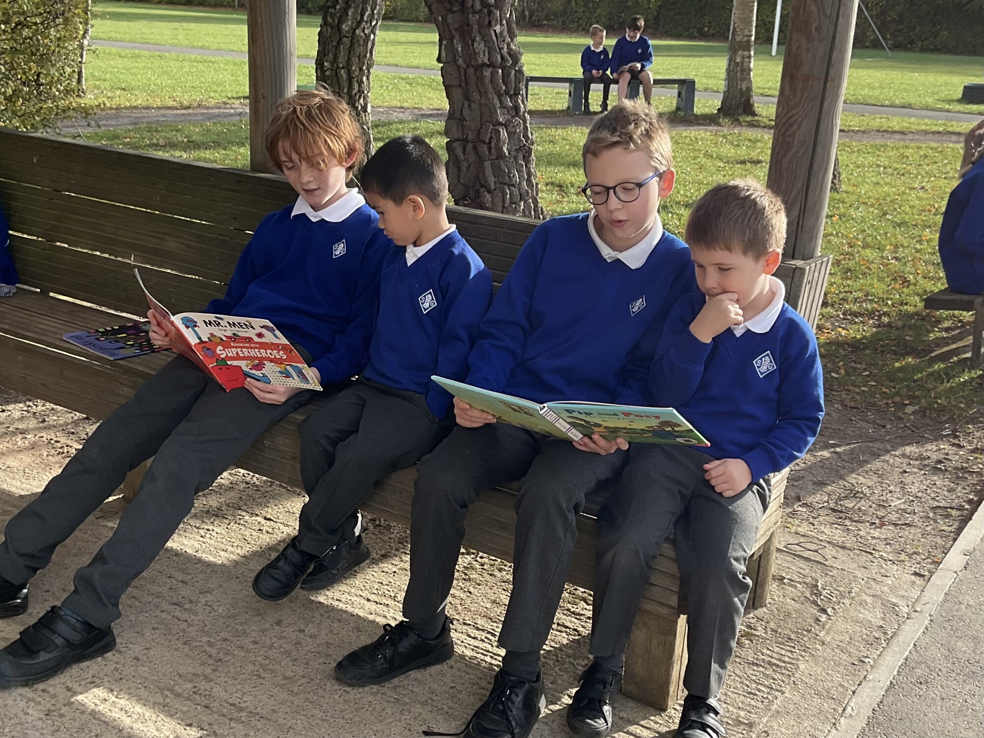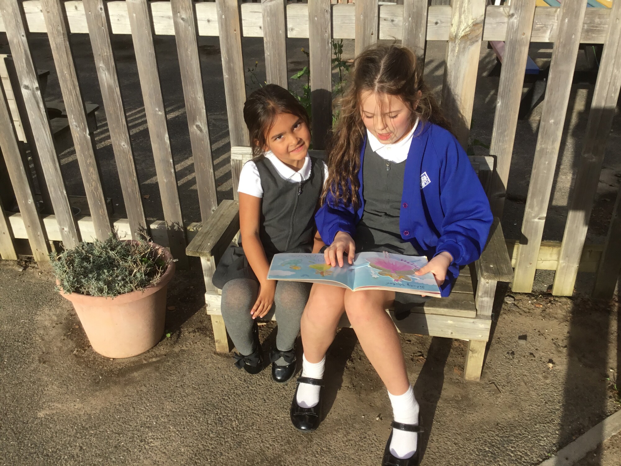 We also enjoyed sharing a story with our Y6 Buddies in the sunshine.