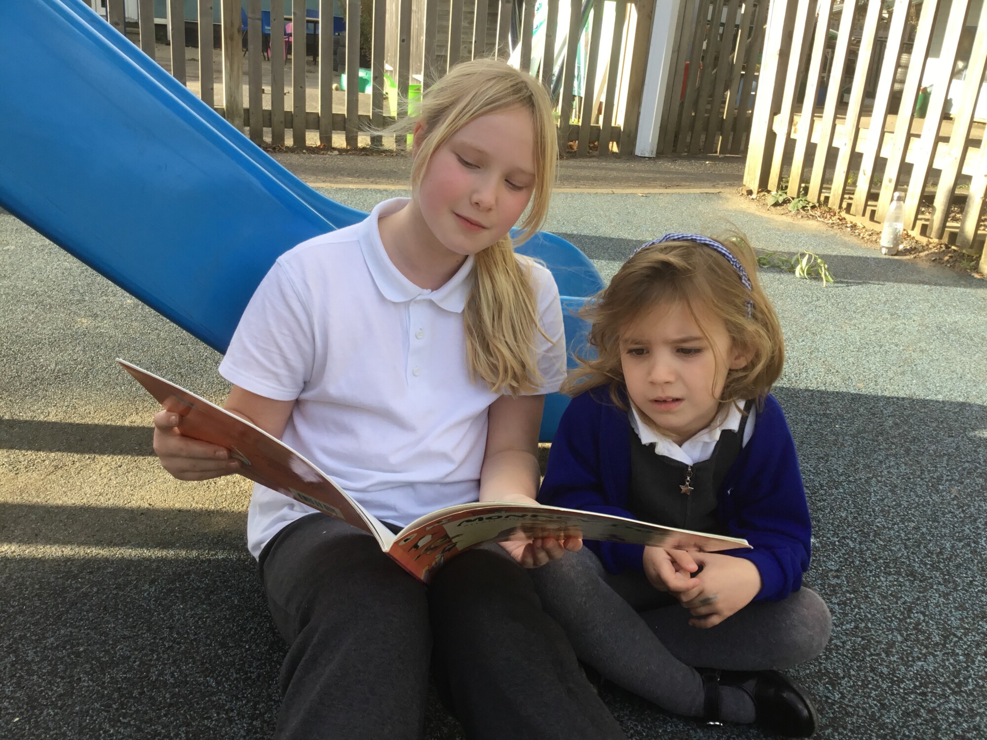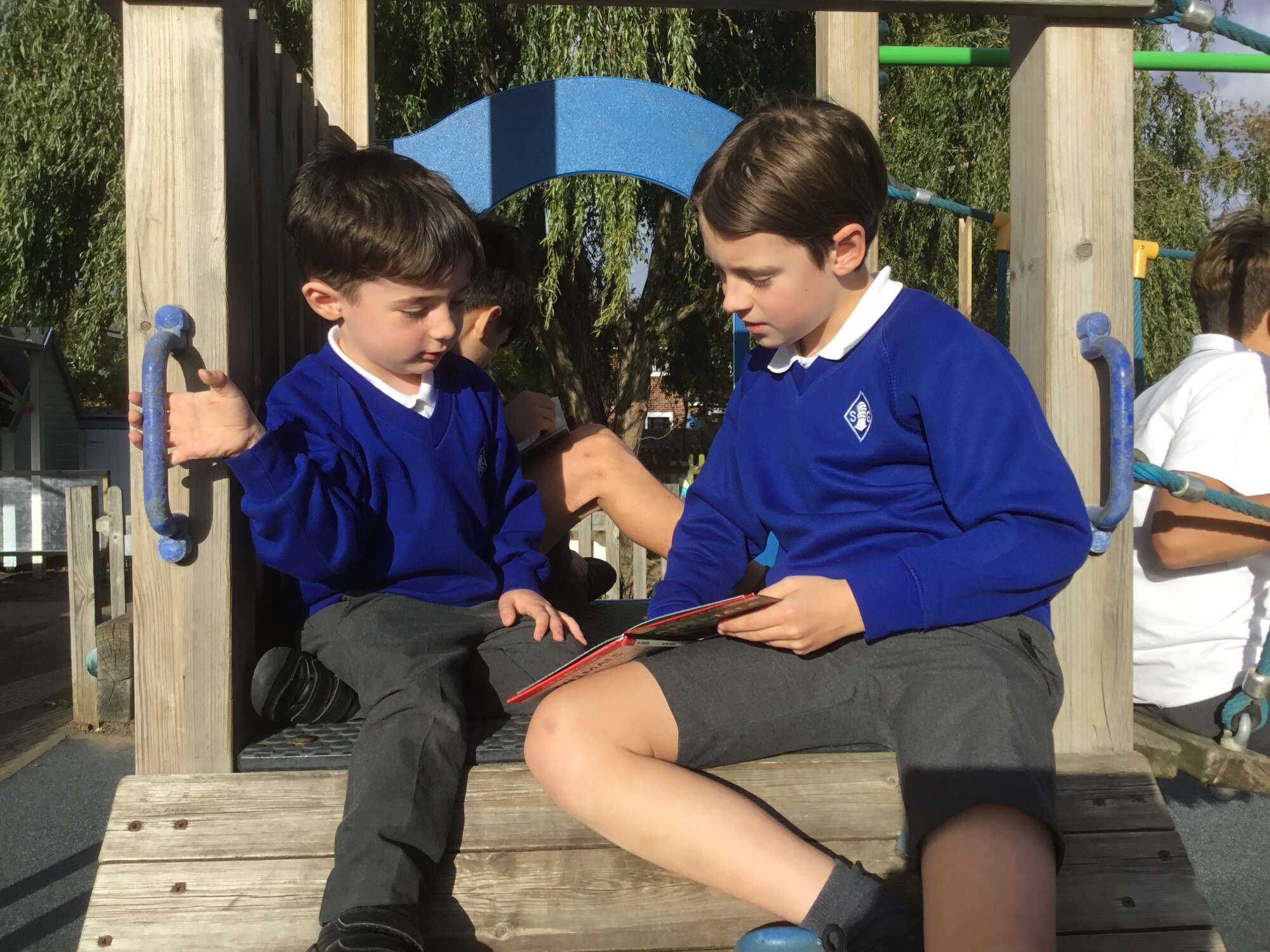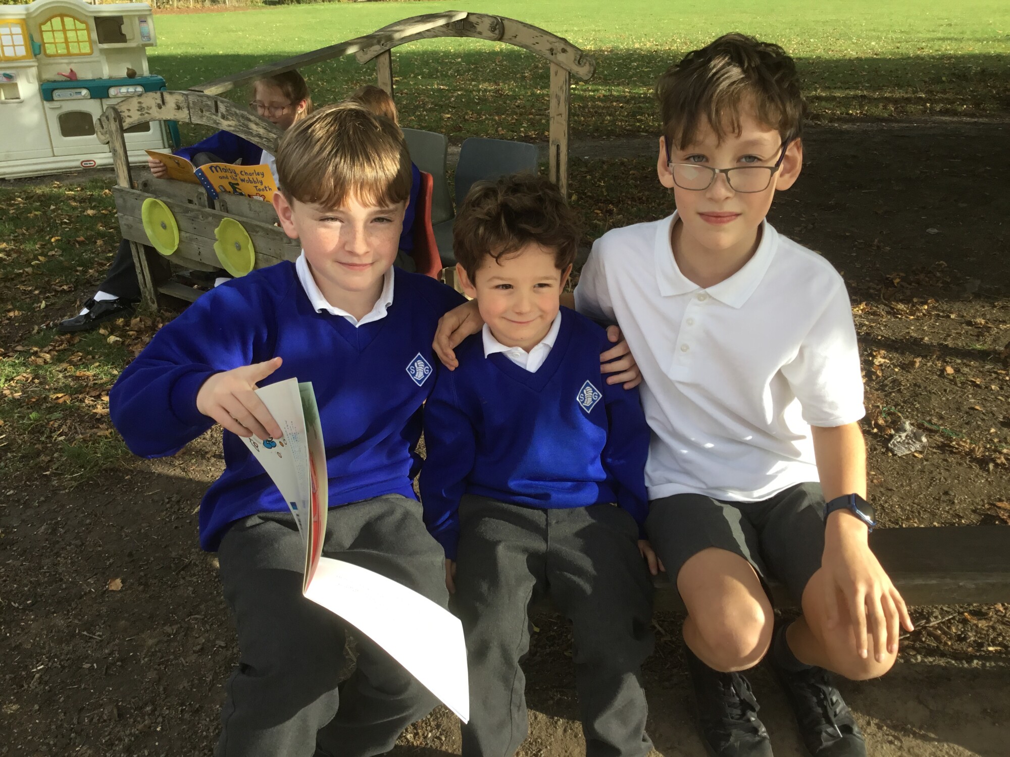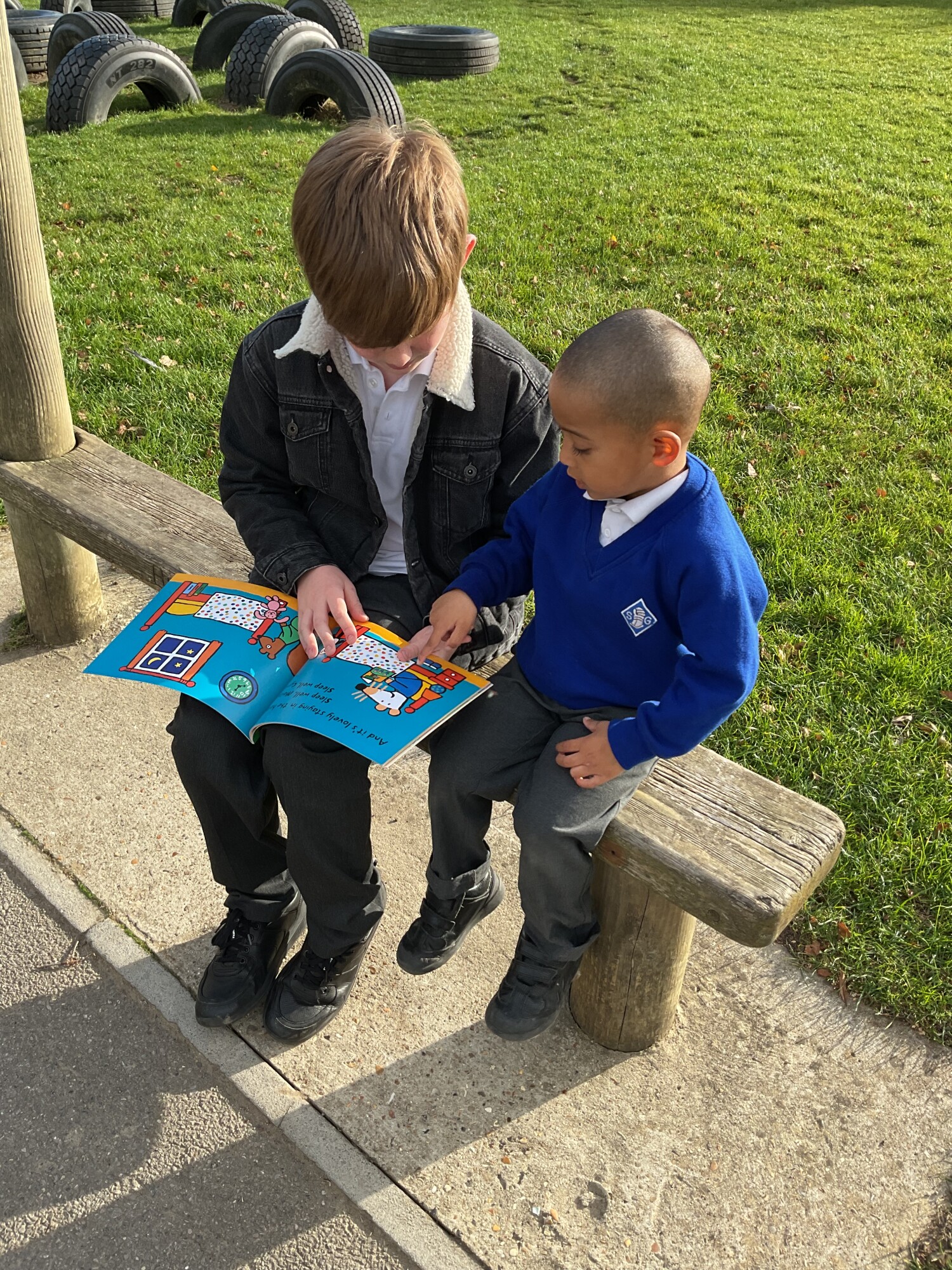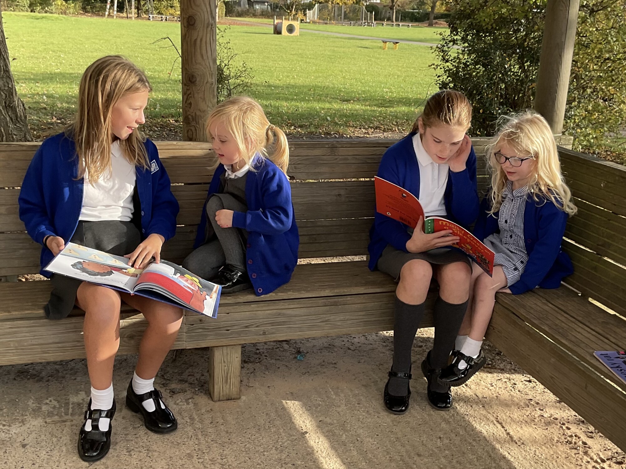 We also enjoyed sharing a story with our Y6 Buddies in the sunshine.