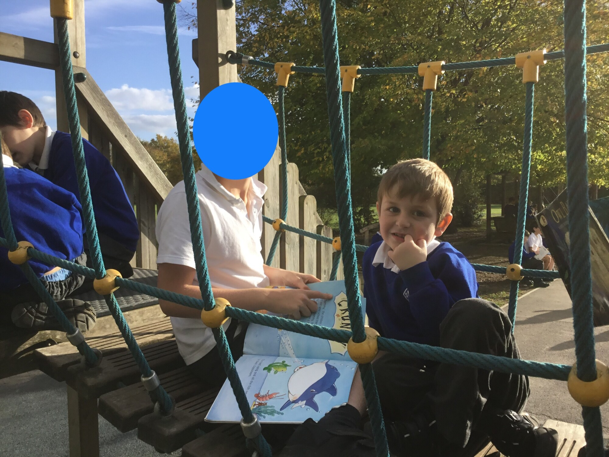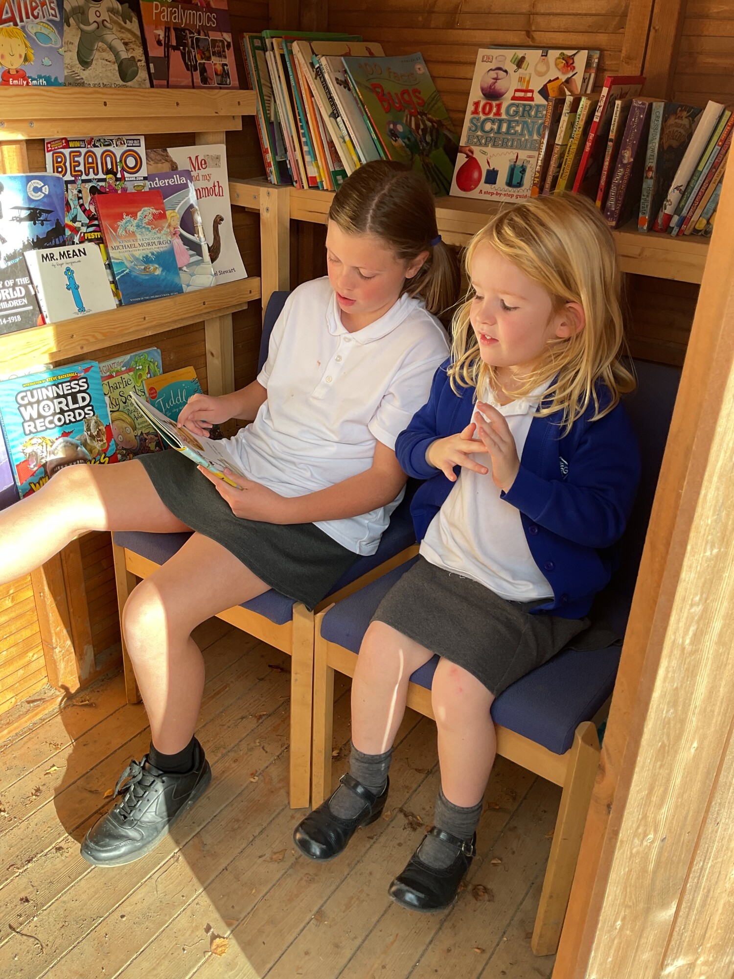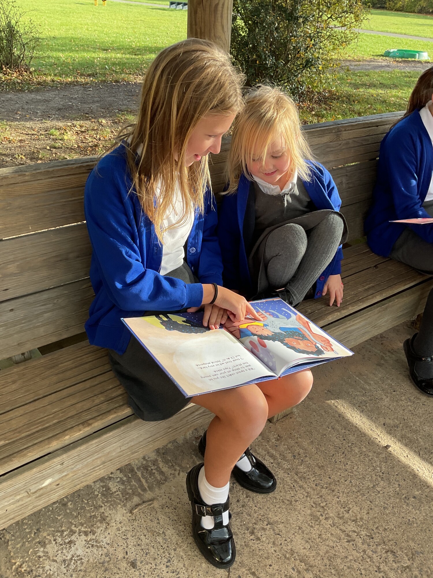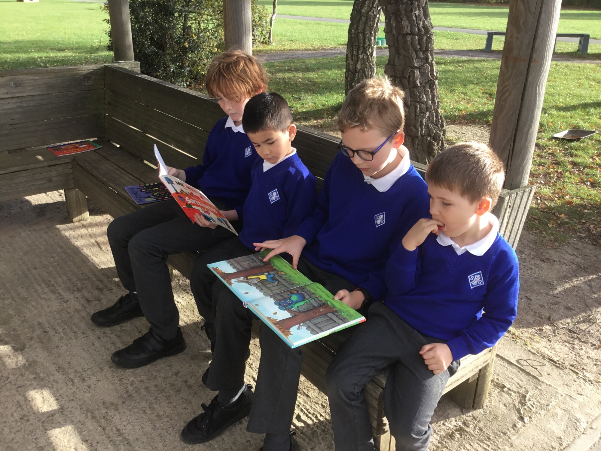 We also enjoyed sharing a story with our Y6 Buddies in the sunshine.