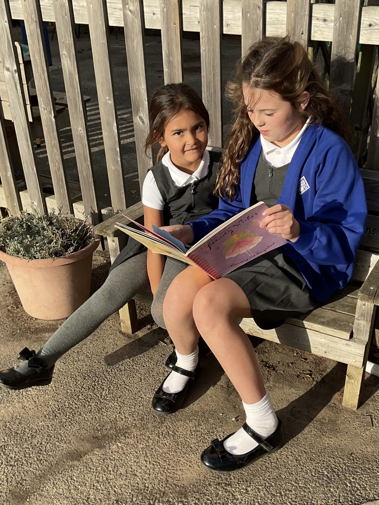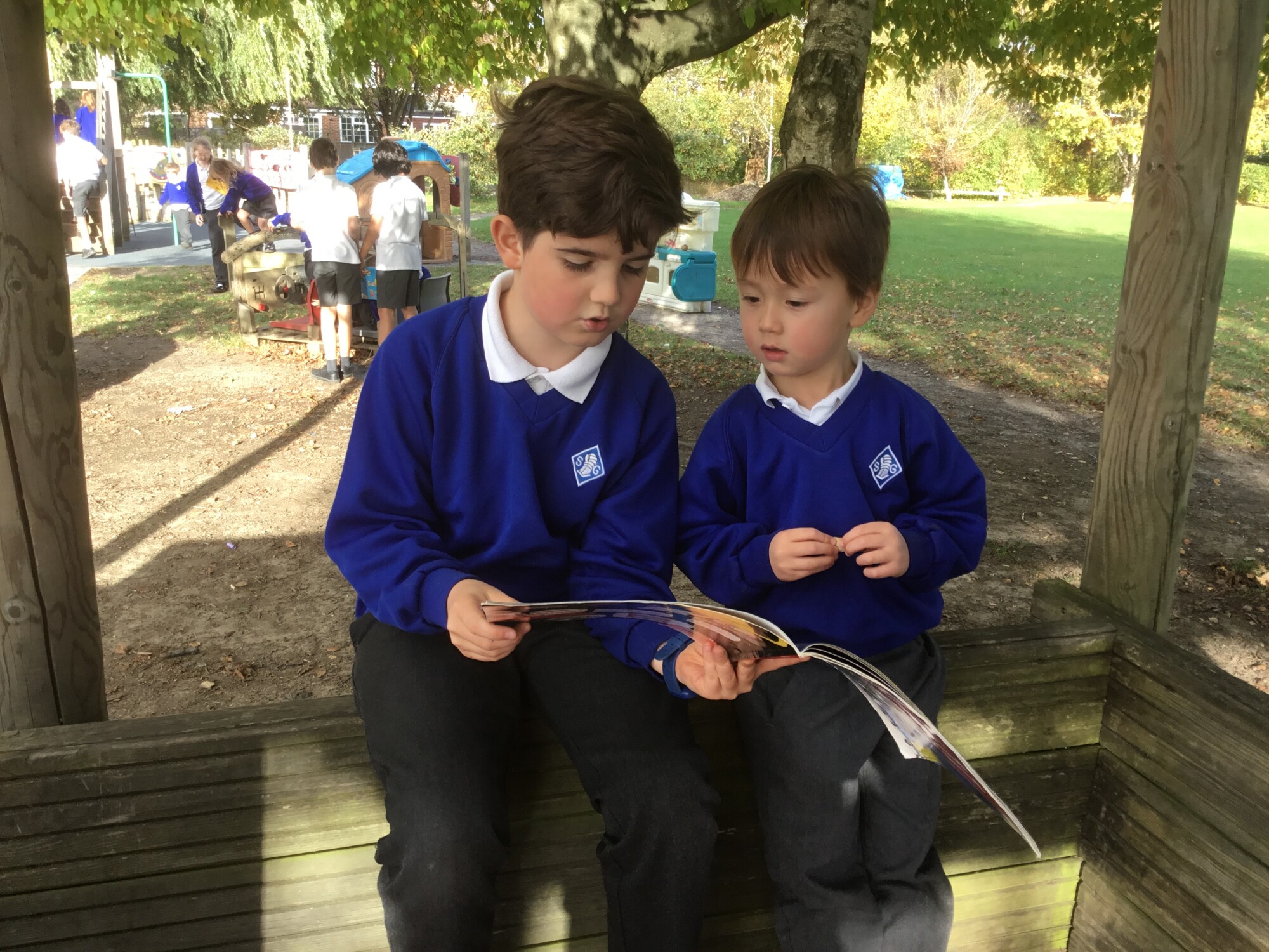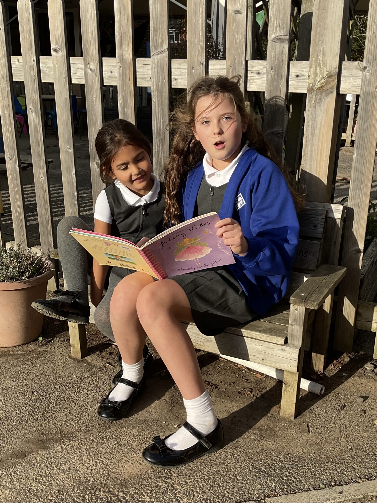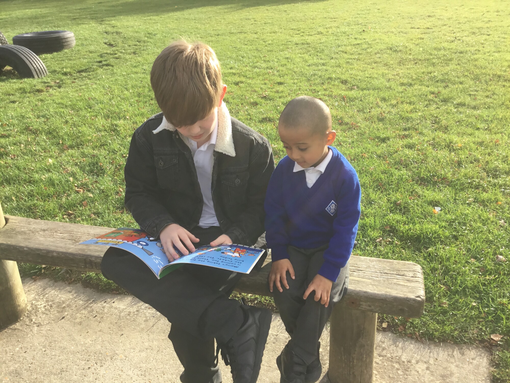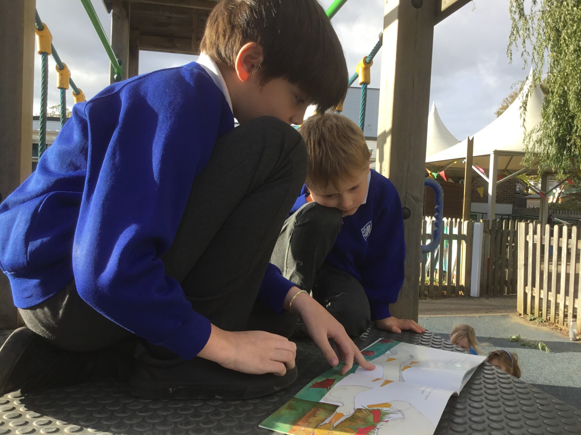 We also enjoyed sharing a story with our Y6 Buddies in the sunshine.