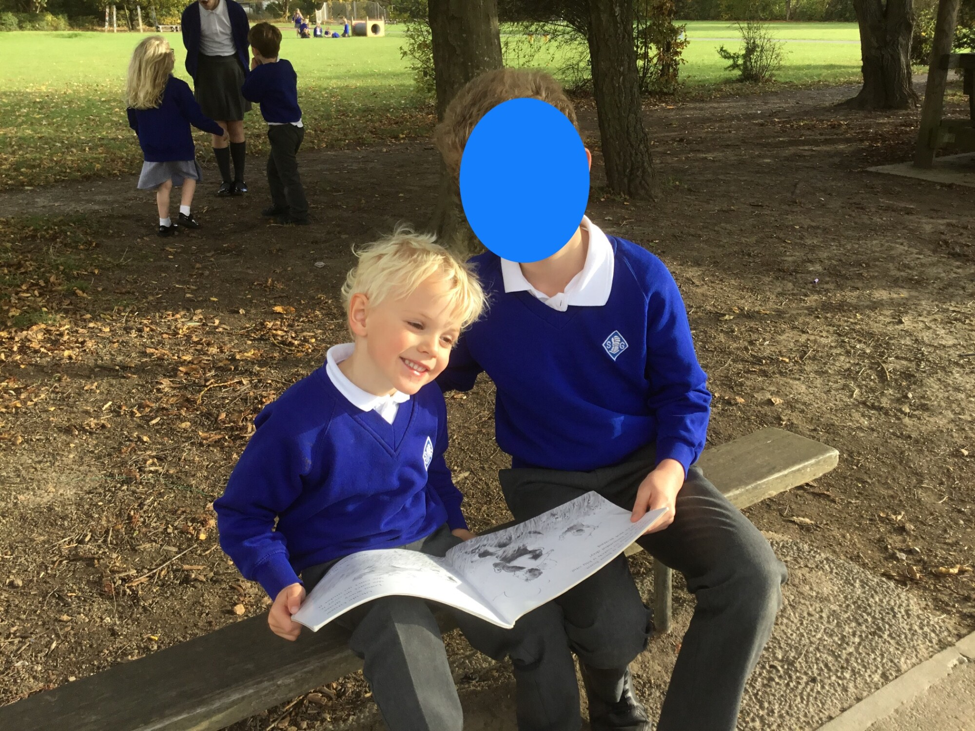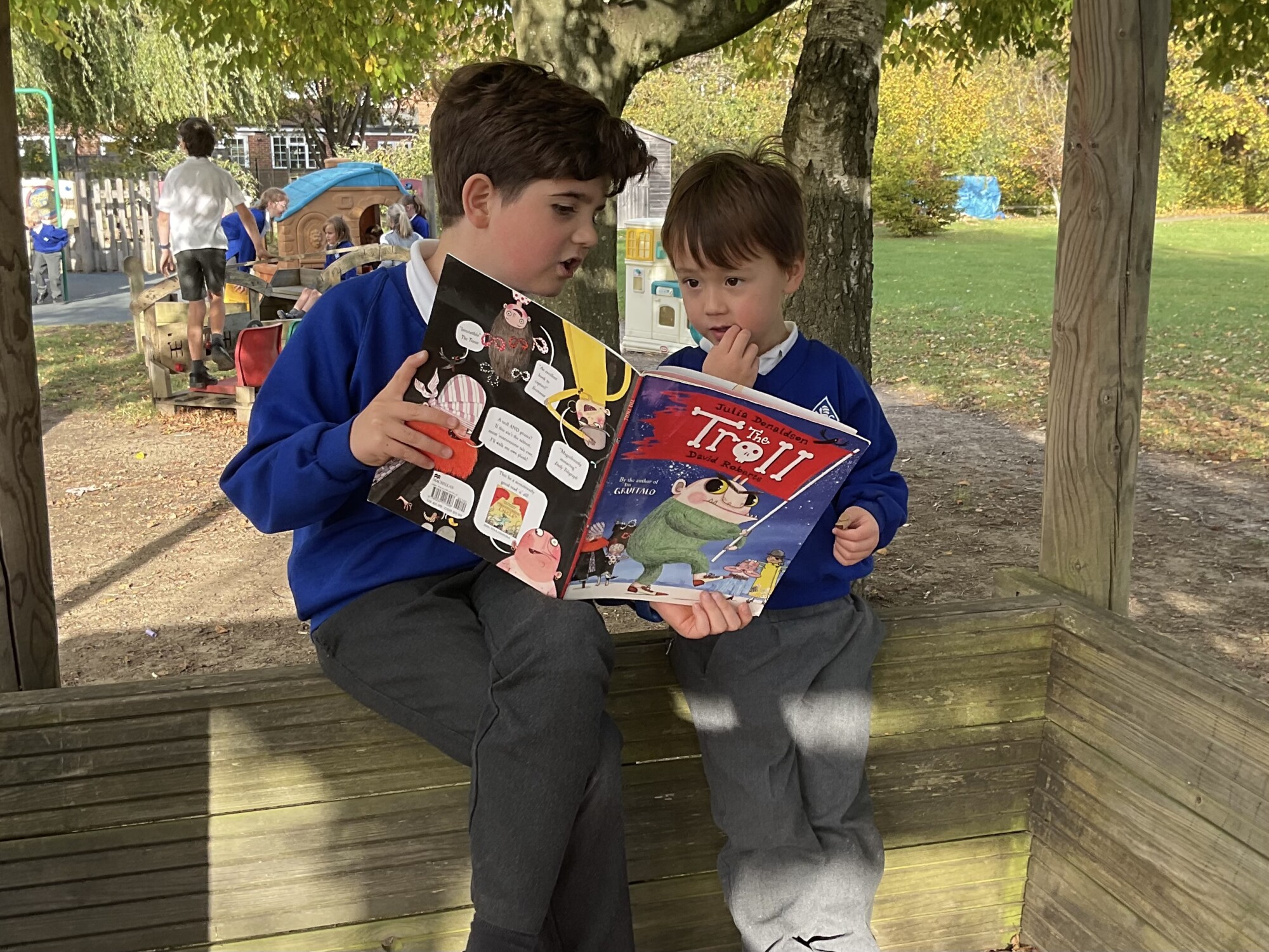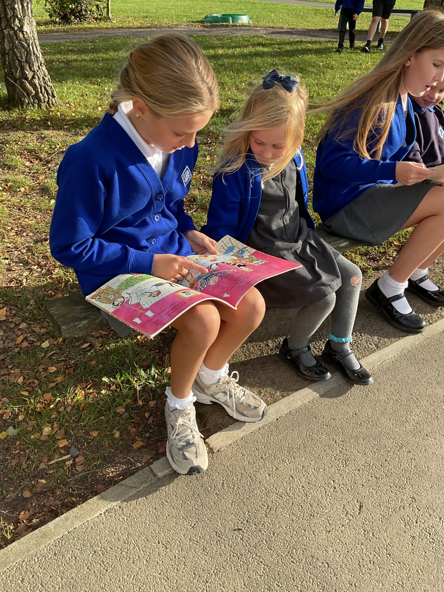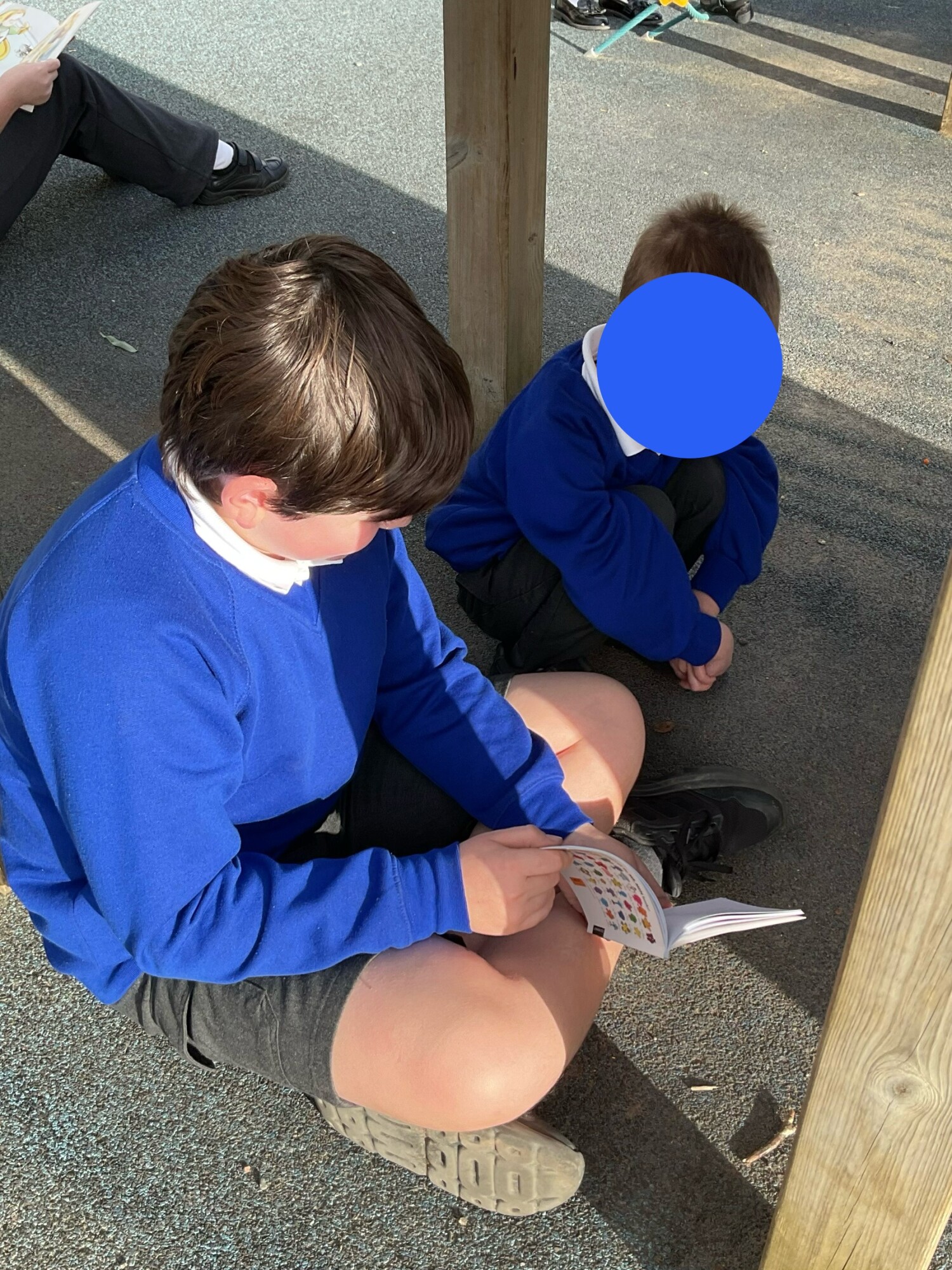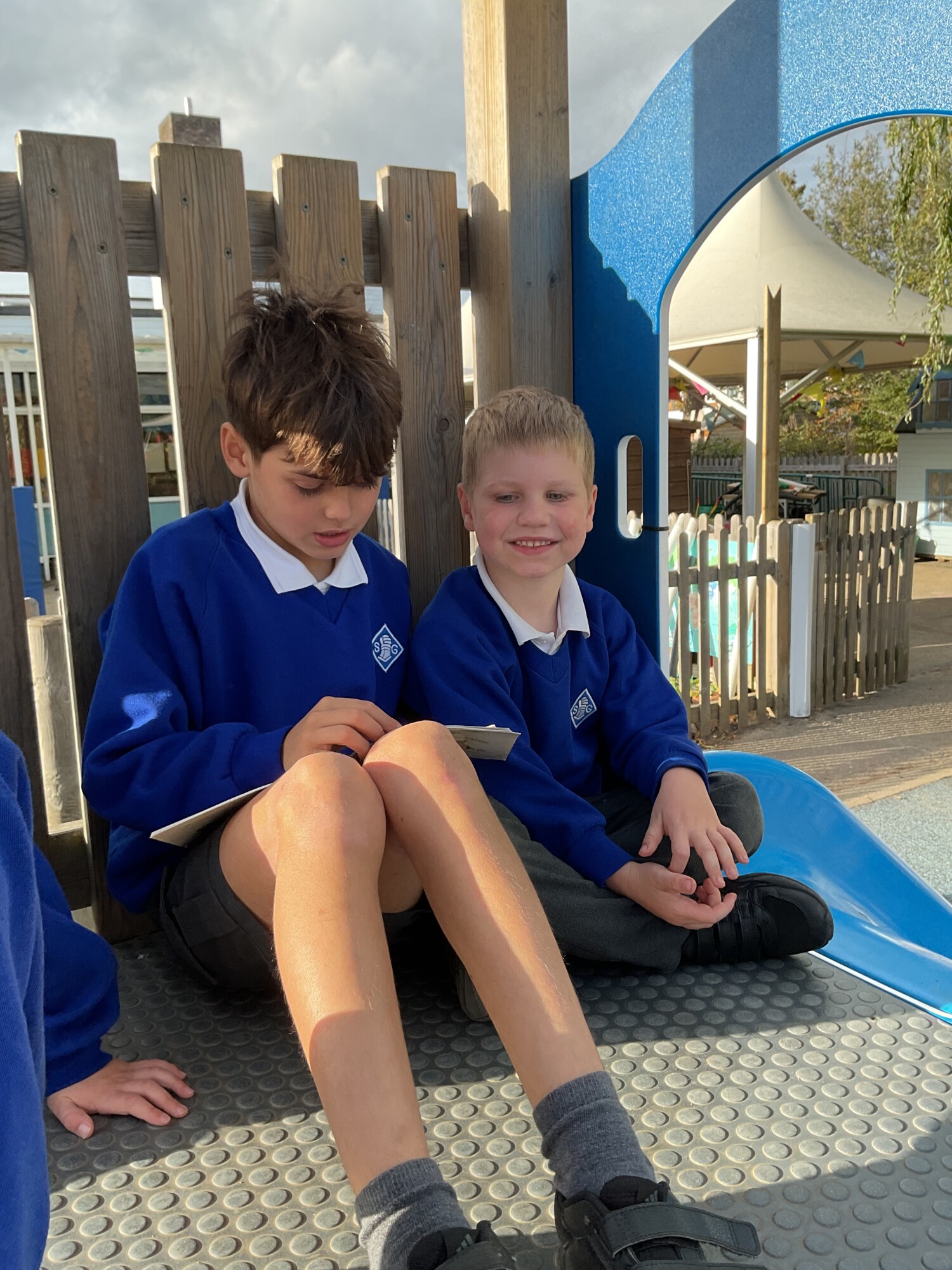 We also enjoyed sharing a story with our Y6 Buddies in the sunshine.